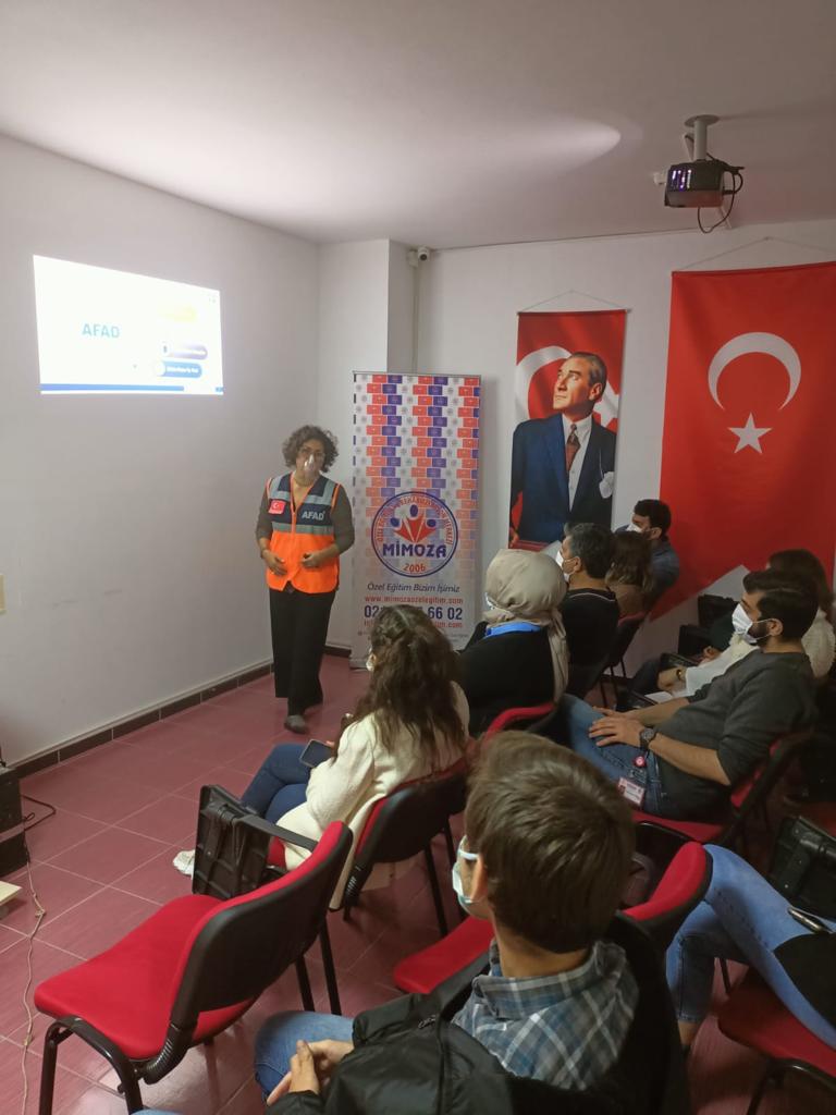 2021 Türkiye Afet Eğitim Yılı kapsamında AFAD Görevlisi Sayın Ebru SÖZER kurumumuza gelip tüm çalışanlarımıza 'Afetler ve Korunma Yolları' semineri düzenlemiştir. Eğitim içeriği itibariyle afet hazırlık planı, afet sırasında yapılacaklar, afet sonrası korunma yolları korunma yolları gibi birçok değerli bilgiyi bizimle paylaşmıştır. AFAD'a çok teşekkür eder, böyle etkili seminerlerde daha çok görüşmek isteriz. Unutmayalım 'Afet değil ihmal öldürür.'
